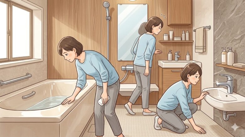 特に床や浴槽は、毎日水分や皮脂汚れがつきやすい場所です。細かい傷が増えると、掃除してもすっきり見えにくくなることがあります。