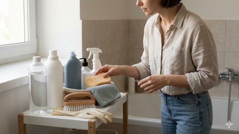 お風呂掃除は、メラミンスポンジを使わなくても進められます。基本は、やわらかいスポンジと中性の浴室用洗剤から始めることです。
