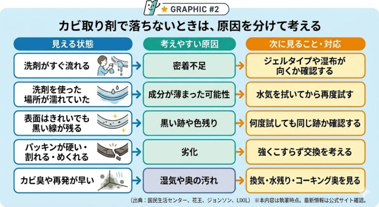 カビ取り剤で落ちないときは、先に原因を分けて考える