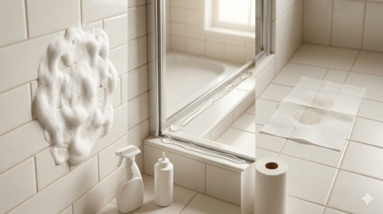 水気が残っていた場合は、落ちない原因が「カビが強すぎる」ではなく「洗剤が十分に働きにくかった」可能性があります。この場合は、いきなり強い方法に進むより、使い方を整えてから試すのが無理のない順番です。
