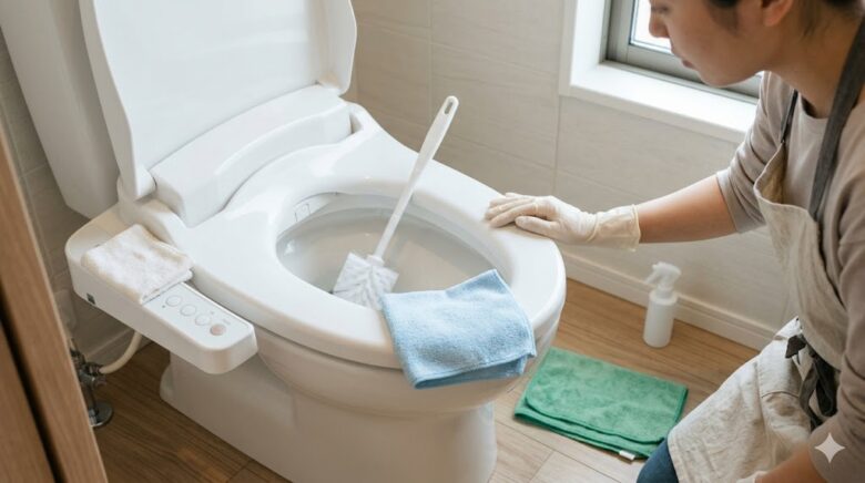 賃貸住宅では、設備を傷めそうな作業は管理会社や大家に確認した方がよいです。特に、温水洗浄便座、タンク内部、床材、壁紙、便器のコーティングは、自己判断で強い洗剤を使うとトラブルになることがあります。