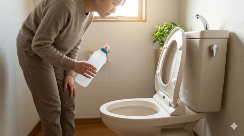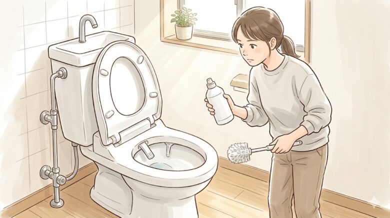 トイレでは、尿石には酸性洗剤、黒ずみやカビには塩素系洗剤を使いたくなる場面があります。ただし、同じ日に続けて使う場合でも、洗剤が残っていないかを慎重に確認します。