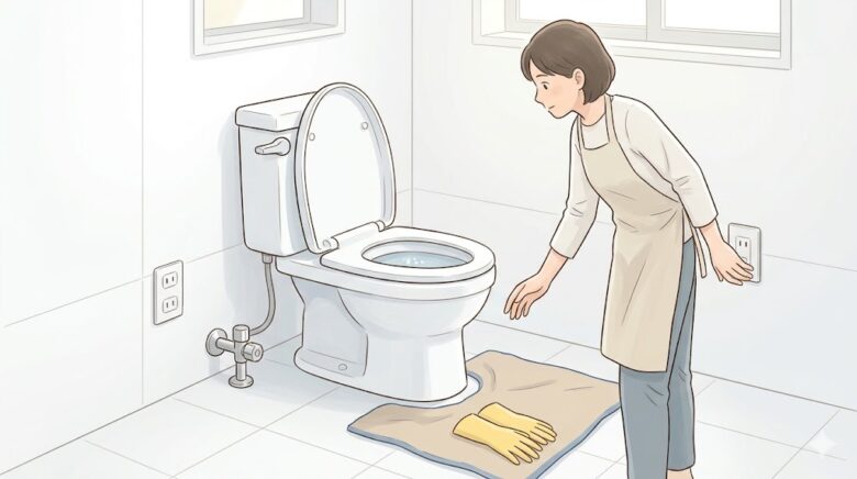 この段階で「水があふれそう」「床が濡れている」「異物を落としたかもしれない」と感じたら、代用品を使う前に作業を止める判断も大切です。焦って進めるほど、詰まりが奥へ移動したり、床まわりの被害が広がったりしやすくなります。