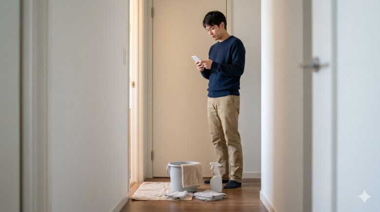 賃貸や集合住宅では、床に水が広がった時点で注意が必要です。下の階への漏水や、床材の傷みにつながることがあるため、自己判断で作業を続けない方がよい場合があります。